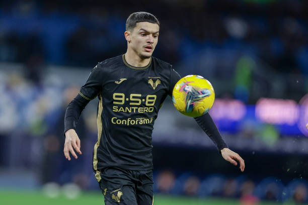 DIEGO ARMANDO MARADONA STADIUM, NAPLES, CAMPANIA, ITALY – 2025/01/12: Verona’s French midfielder Reda Belahyane controls the ball during the Serie A football match between SSC Napoli vs Hellas Verona. SSC Napoli won 2-0. (Photo by Antonio Balasco/KONTROLAB/LightRocket via Getty Images)