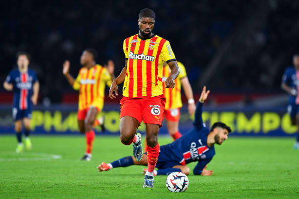 PARIS, FRANCE – NOVEMBER 02: Kevin Danso of Lens controls the ball during the Ligue 1 match between Paris Saint-Germain FC and Racing Club de Lens at Parc des Princes on November 02, 2024 in Paris, France. (Photo by Franco Arland/Getty Images)