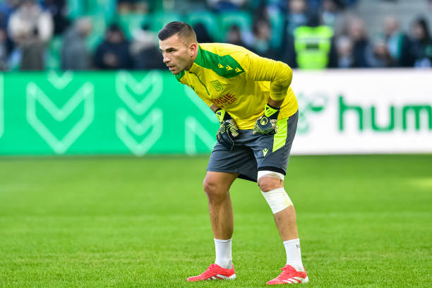 SAINT-ETIENNE, FRANCE – JANUARY 19: Goalkeeper Anthony Lopes of FC Nantes warming up during the France Ligue 1 match between AS Saint-Etienne and FC Nantes at Stade Geoffroy-Guichard on January 19, 2025 in Saint-Etienne, France. (Photo by Eurasia Sport Images/Getty Images)