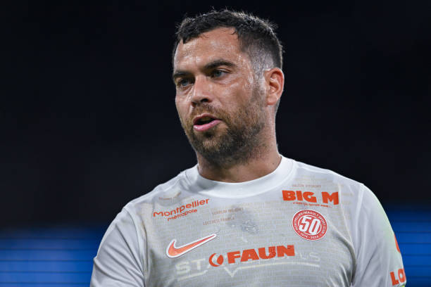 MONTPELLIER, FRANCE – MARCH 17: Captain of Montpellier, Teji Savanier reacts during the Ligue 1 Uber Eats match between Montpellier HSC and Paris Saint-Germain at Stade de la Mosson on March 17, 2024 in Montpellier, France. (Photo by Xavier Laine/Getty Images)