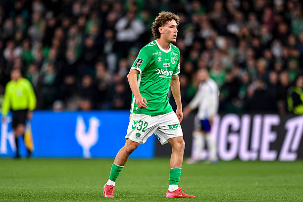 SAINT-ETIENNE, FRANCE – APRIL 20: Lucas Stassin of Saint-Etienne looks on during the Ligue 1 McDonald’s match between AS Saint-Etienne and Olympique Lyonnais at Stade Geoffroy-Guichard on April 20, 2025 in Saint-Etienne, France. (Photo by Eurasia Sport Images/Getty Images)